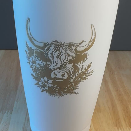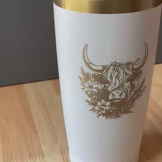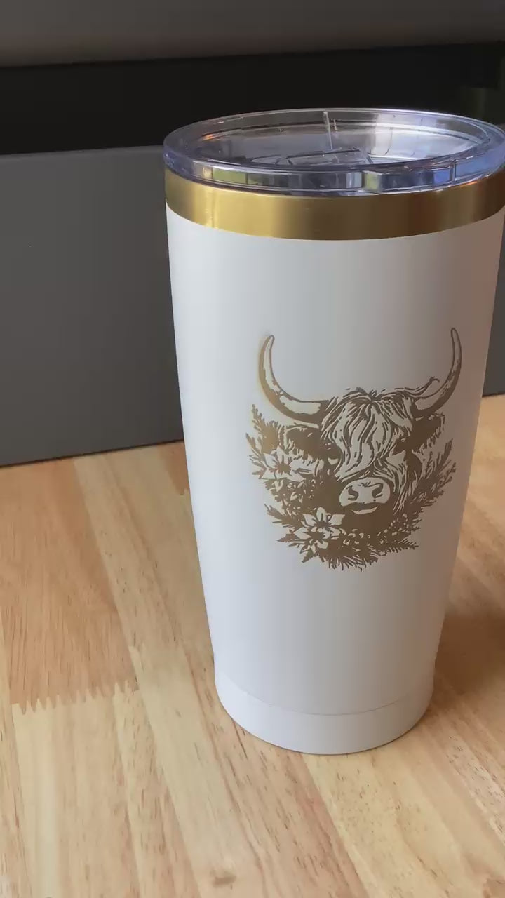20oz White Highland Cow Tumbler, Custom Engraved Gift for mom, Gift for Daughter, Anniversary Gift, Holiday Gift